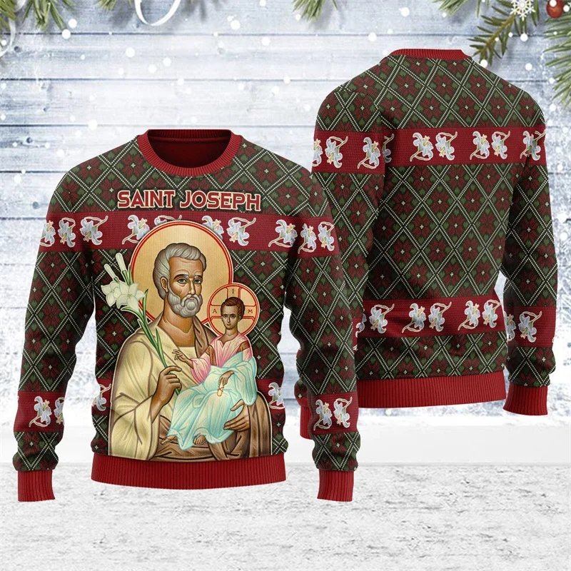 All Over Print Maria And Jesus Graphic Christmas Sweatshirts New In Casual Crew Neck Pullover Sweatshirt Clothes Mens Hoodie Top